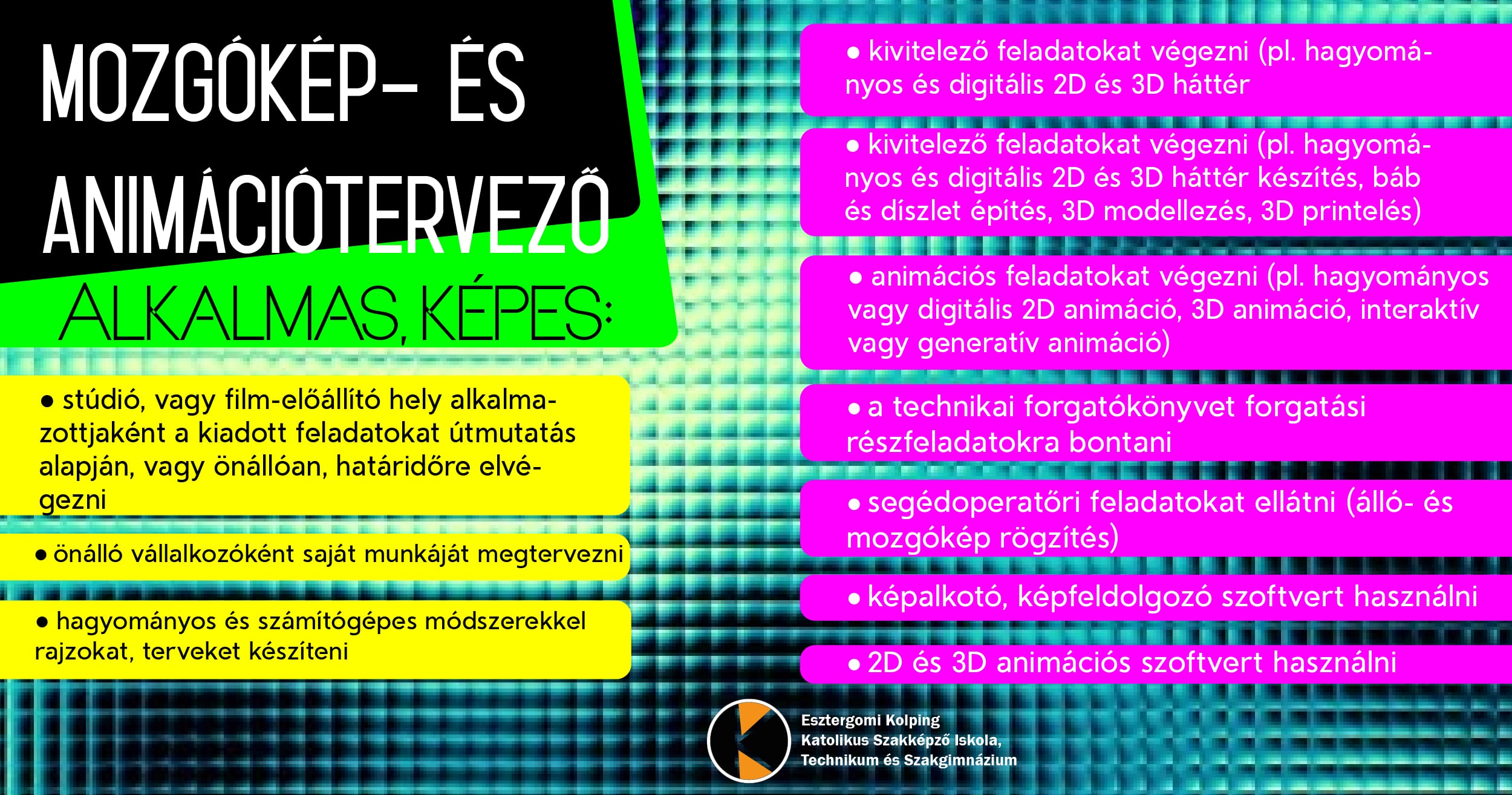 Az Esztergomi Kolping Katolikus Szakképző Iskola, Technikum és Szakgimnázium a 2024/2025-ös tanévtől kezdődően eddigi, szokásos szakmai képzéseiken kívül új képzéseket indítanak az iskolában érettségivel rendelkező jelentkezők számára.