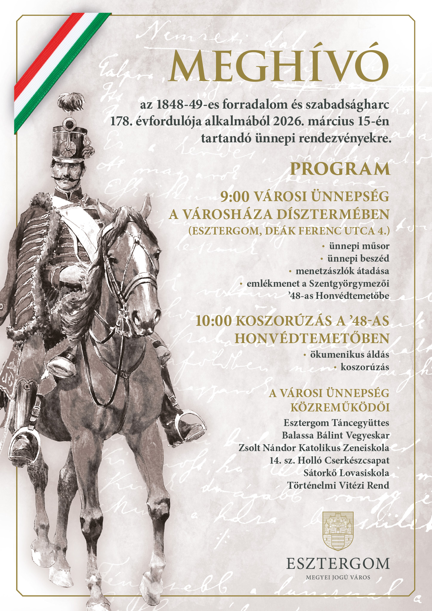 Esztergom Megyei Jogú Városa ünnepi programmal és közös megemlékezéssel tiszteleg az 1848–49-es forradalom és szabadságharc hősei előtt március 15-én.