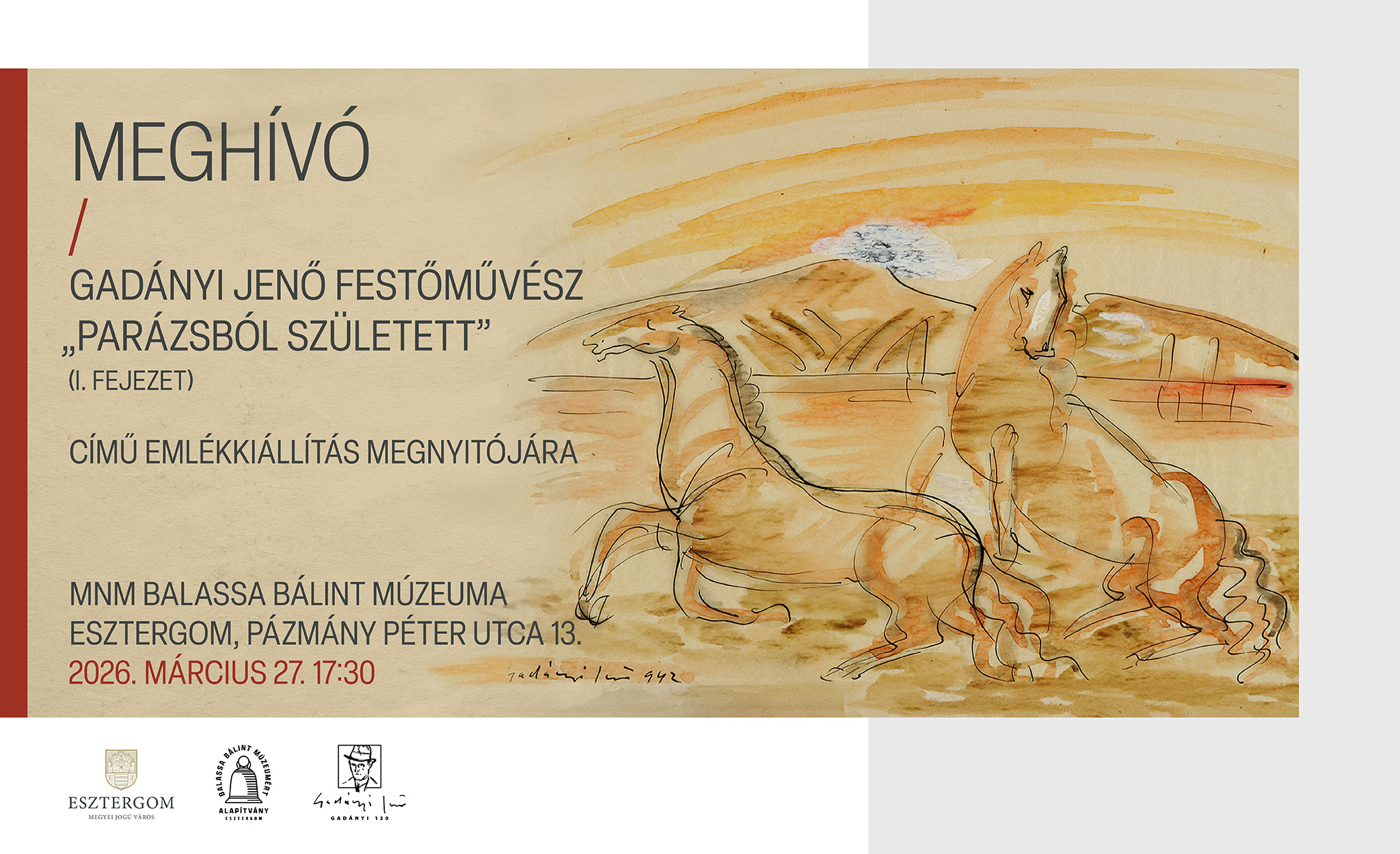 Gadányi Jenő festőművész szellemisége újra életre kel Esztergomban: „Parázsból született” című, több fejezetben bemutatkozó emlékkiállítása első része nyílik meg március 27-én a MNM Balassa Bálint Múzeum falai között. Az esemény nemcsak a művész munkássága előtt tiszteleg, hanem különleges lehetőséget kínál arra is, hogy a közönség közelebb kerüljön Gadányi sajátos, lírai világához