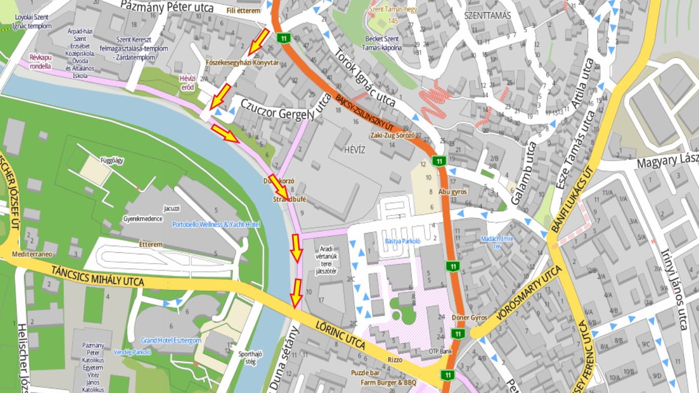 A felújítás időszakára a Kis Duna sétány – Liszt Ferenc utca és Lőrinc utca közötti szakaszának – egyirányú autóforgalom számára történő megnyitásával lehetőséget biztosítunk arra, hogy a 3,5 tonnánál kisebb tömegű járművek a Liszt Ferenc utcán és a Kis Duna sétányon keresztül eljussanak a Lőrinc utcába, illetve a Bottyán Hídon keresztül a Prímás szigetre, így kerülve el a munkálatokkal érintett útszakaszt. A megváltozott forgalmi rendnek megfelelő közlekedést az ideiglenesen kihelyezett táblák segítik.
