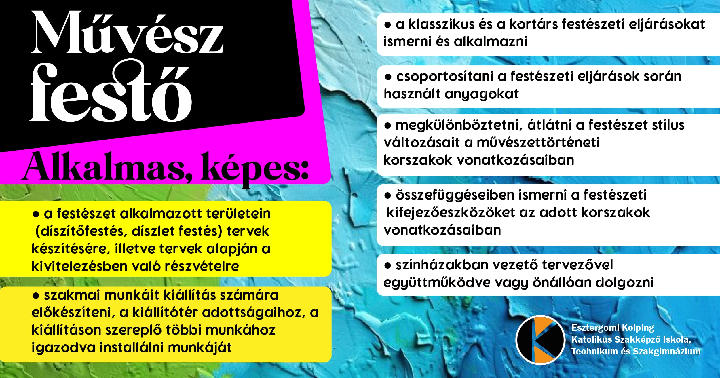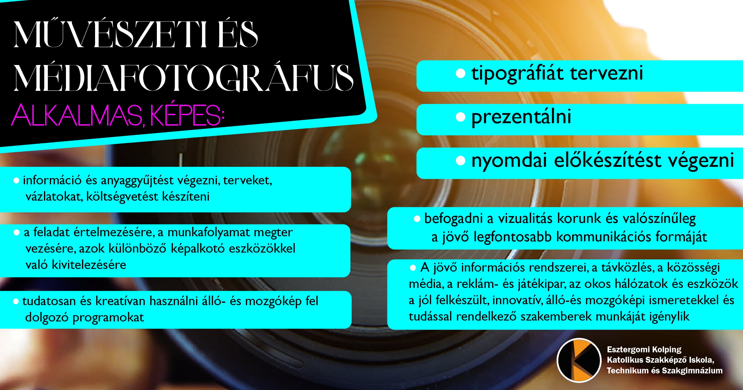 Az Esztergomi Kolping Katolikus Szakképző Iskola, Technikum és Szakgimnázium a 2024/2025-ös tanévtől kezdődően eddigi, szokásos szakmai képzéseiken kívül új képzéseket indítanak az iskolában érettségivel rendelkező jelentkezők számára.