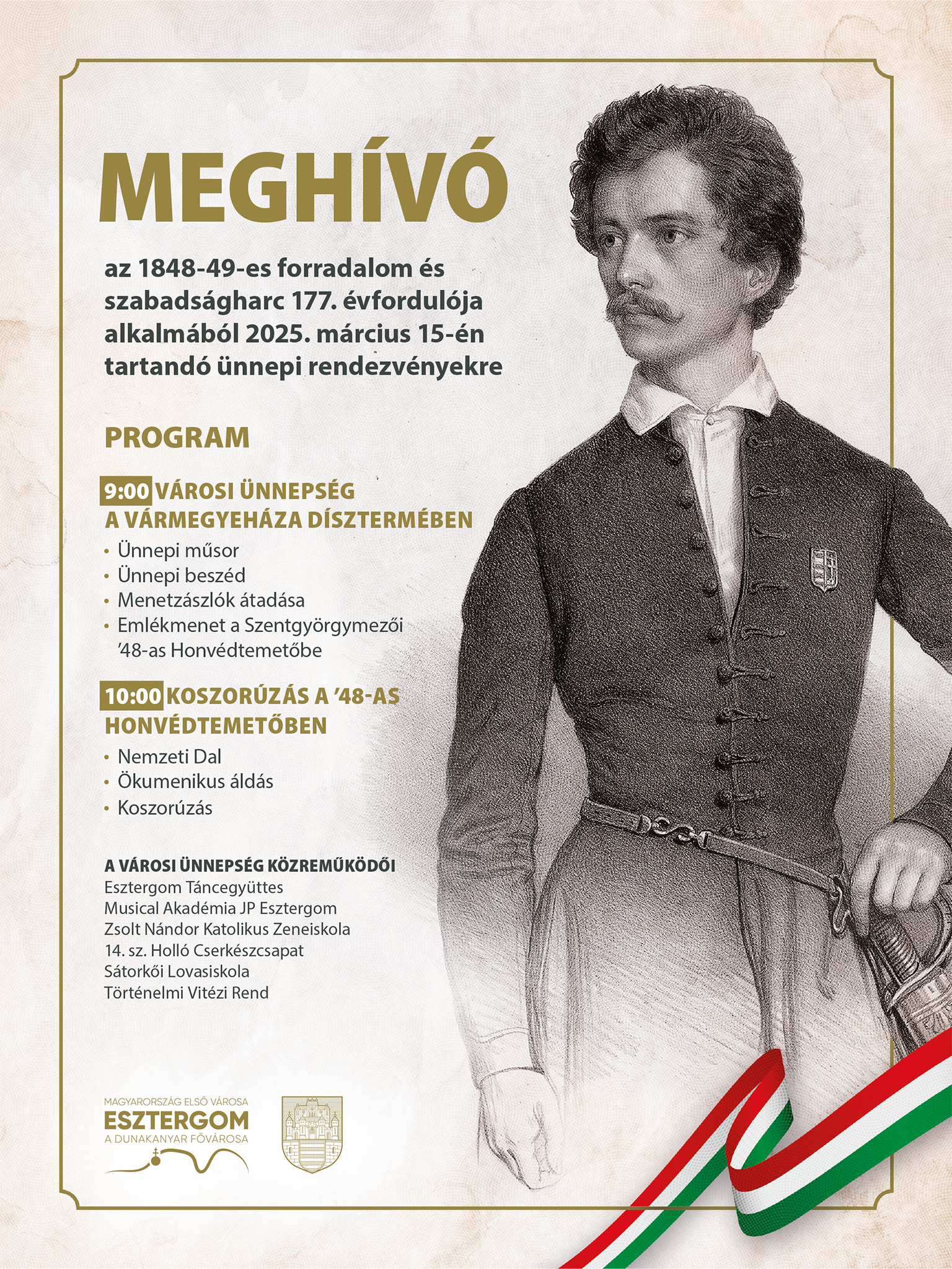 Esztergom Megyei Jogú Város - a hagyományoknak megfelelően - az idei évben is ünnepi megemlékezést rendez az 1848-49-es forradalom és szabadságharc 177. évfordulója alkalmából.