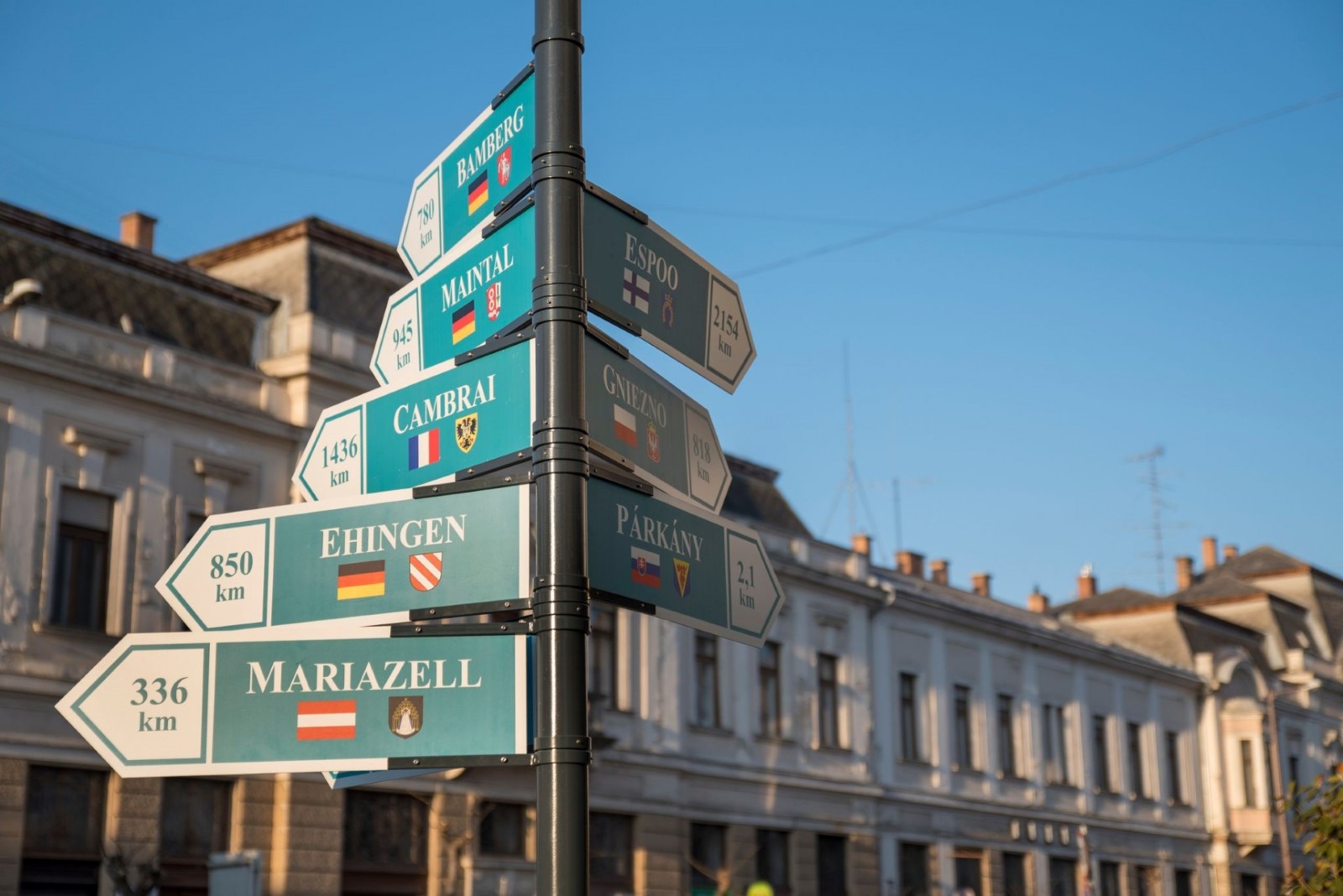 Esztergomnak jelenleg 9 testvérvárosa van. Legrégebbi a finnországi Espoo, mellyel 1974 óta tart a kapcsolat, legújabb pedig az egyesült királyságbeli Canterbury, mely 2004 óta tagja testvérvárosaink listájának. Idén harminc éve annak, hogy három várossal is megkötöttük ezt a virágzó kapcsolatot: Bamberg, Ehingen és Cambrai 1992-ben kerületek fel erre az igen impozáns listára. Ennek apropóján a város egy, a 9 testvérváros irányát és Esztergomtól való távolságát jelző táblát helyezett el a Lőrinc utca sarkán 2022.03.08-án. Ez az évforduló remek alkalom arra, hogy kicsit közelebbről is megismerkedjünk ezzel a három testvérvárosunkkal.