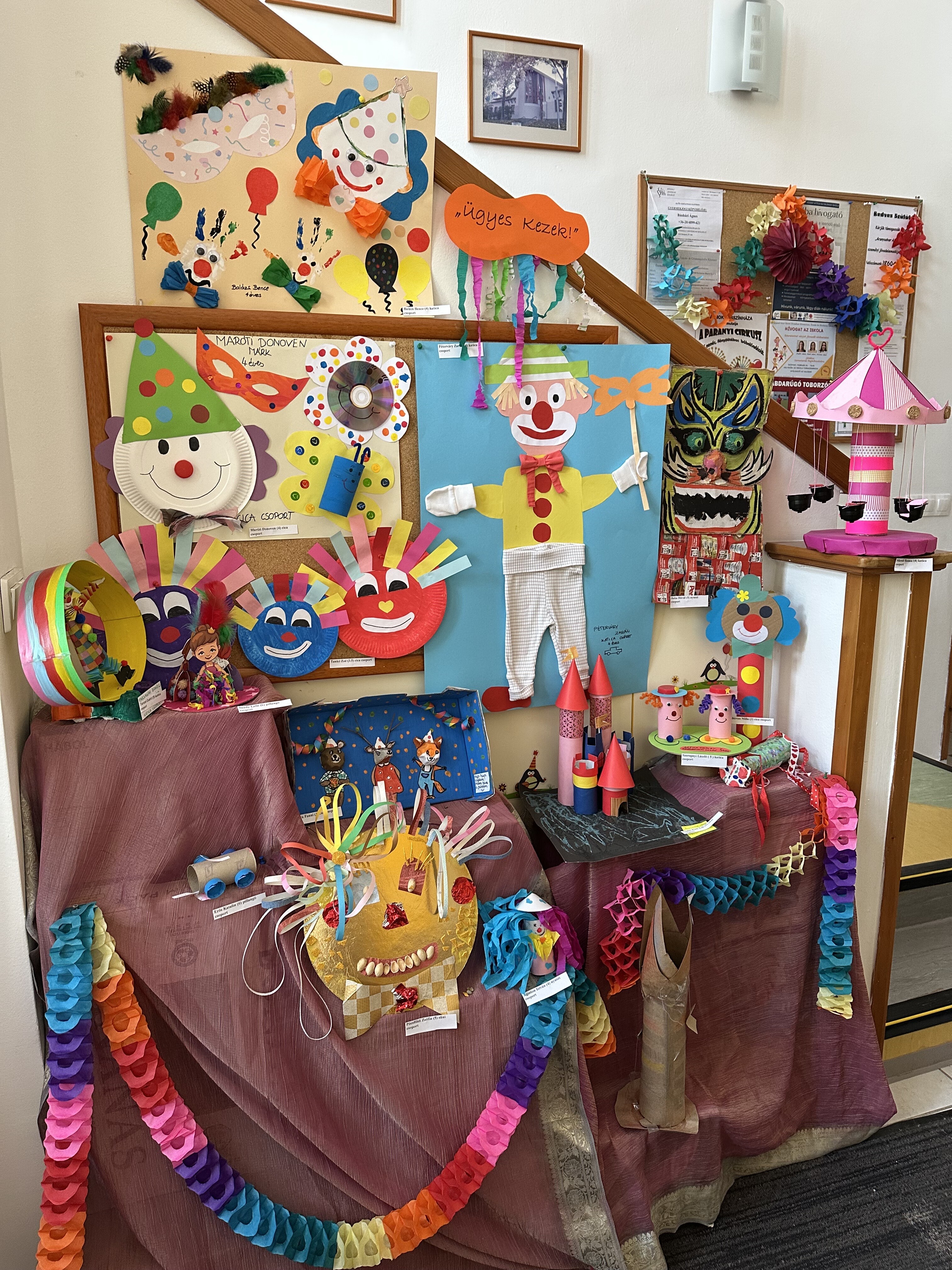 „Itt a farsang áll a bál…” Az idei évben másodjára hirdettem meg az „Ügyes kezek!” pályázatot az Aranyhegyi Óvodában. Az első, őszi kiállítás sikerét követően télen, farsangi témában alkothattak a gyerekek szüleikkel, nagyszüleikkel, testvéreikkel együtt. A téliszünetet követően az otthonokban számos hulladéknak vélt eszköz halmozódhatott fel (csomagoló papírok, dobozok, tasakok, szalagok…). Úgy gondoltam, hogy itt az alkalom az újrahasznosításra. A pályázatra farsangi témában, újrahasznosítható anyagokból lehetett készülni. Ismét számos gyermek készített szebbnél szebb alkotást családi körökben, így a pályázat egyik fő célja is megvalósult: A közös együttlét, egymásra figyelés, együtt alkotás, együtt gondolkodás a minőségi időtöltés. A művekből kollégáim segítségével kiállítást csináltunk, melyet az óvoda bejáratánál csodálhat meg mindenki, egészen a farsangi időszak végéig. A résztvevők emléklapot, ajándékot kaptak melyet a csoportjukban vehettek át óvónőjüktől. A következő pályázatot tavasszal hirdetem meg, melyre remélem ugyanilyen lelkesedéssel készülnek majd a szülők gyermekeikkel.