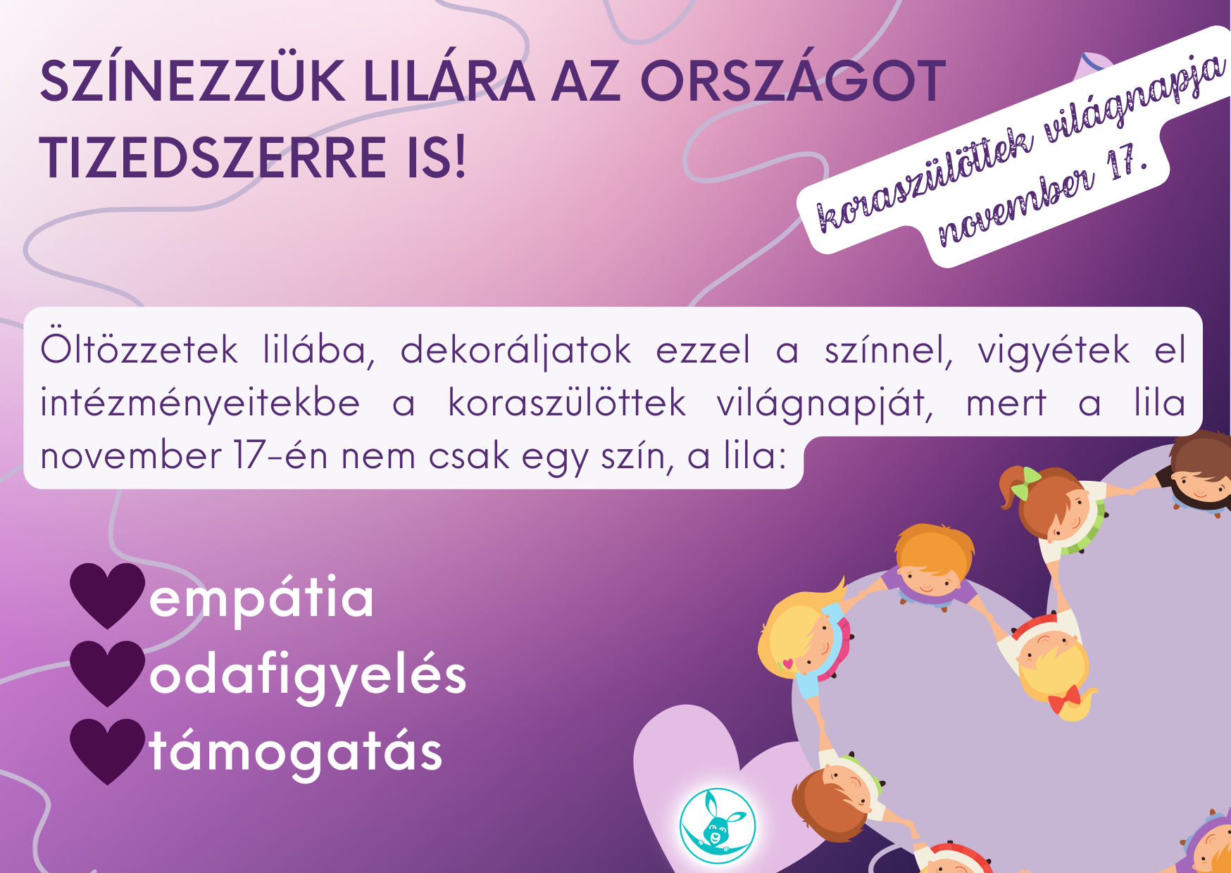 A lila szín a koraszülöttek világnapjának szimbólumává vált, így aki november 17-én lila színű ruhát, szalagot, cipőt visel a koraszülöttként született kisbabákra hívja fel a figyelmet.