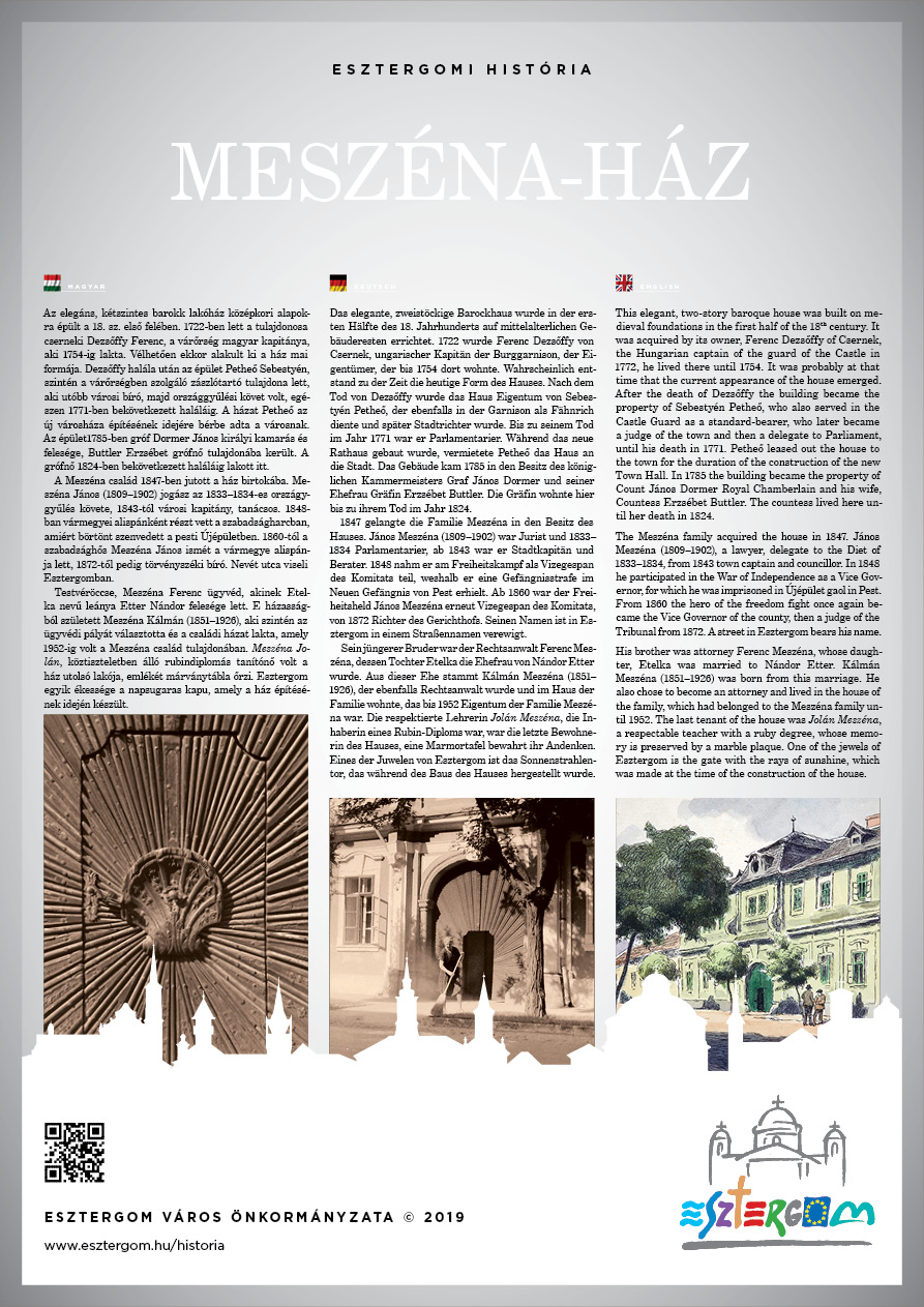 A Meszéna család 1847-ben jutott a ház birtokába. Meszéna János (1809–1902) jogász az 1833–1834-es országgyűlés követe, 1843-tól városi kapitány, tanácsos. 1848-ban vármegyei alispánként részt vett a szabadságharcban, amiért börtönt szenvedett a pesti Újépületben. 1860-tól a szabadsághős Meszéna János ismét a vármegye alispánja lett, 1872-től pedig törvényszéki bíró. Nevét utca viseli Esztergomban.