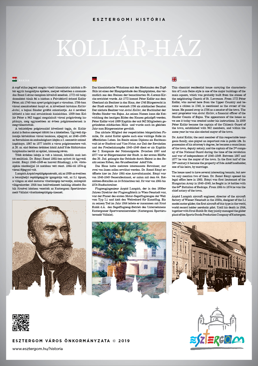 A tekintélyes polgárcsalád következő tagja, dr. Kollár Antal is fontos szerepet töltött be a közéletben. Ügyvédi diplomája birtokában városi tanácsos, aljegyző, az 1848–1849-es forradalom és szabadságharc idején a 2. nemzetőr század kapitánya. 1867 és 1877 között a város polgármestere volt. A 20. sz. első felében örökösei közül Adolf Ede földbirtokos tulajdonába került az épület, házasság révén.